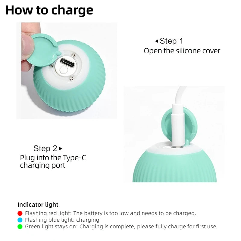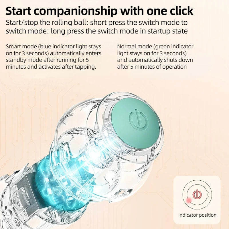 Interactive movement: Tap to wake; the ball rolls and changes route after bumps to keep cats engaged.